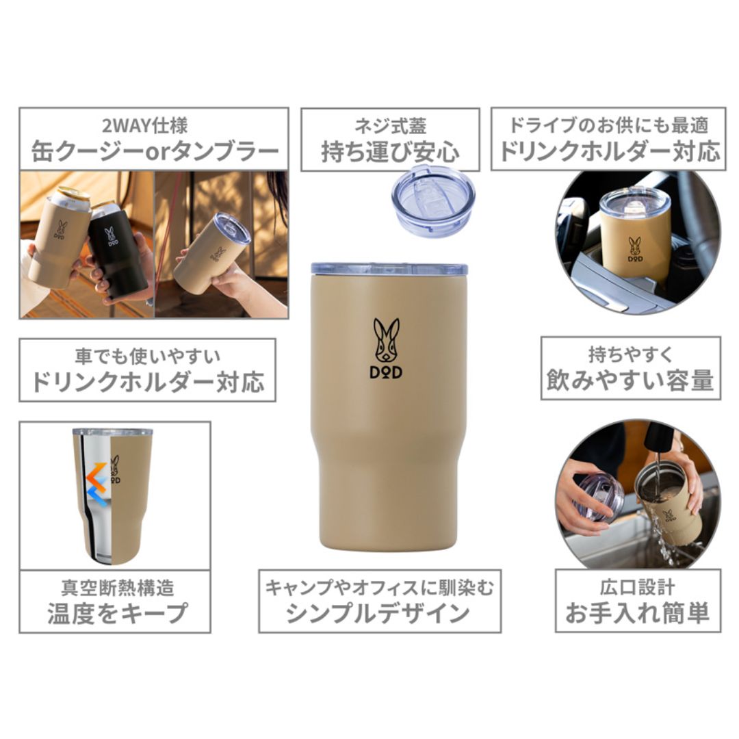 タンブラーとしても、缶クージーとしても使える2WAY設計。