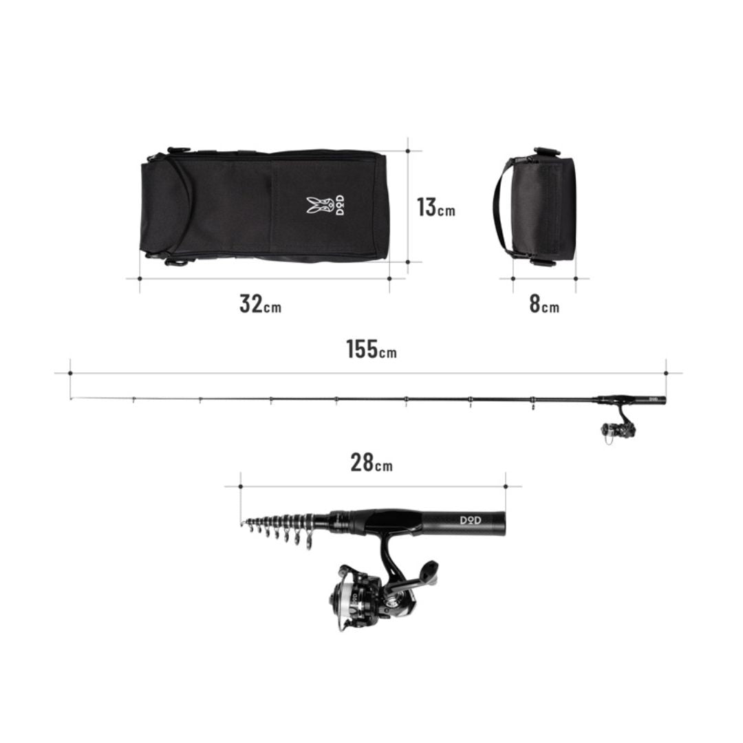 キャンプや旅行のついでに、こっそり釣りを楽しみたい。そんな願いを叶える、仕舞寸法わずか28cmのコンパクトなロッドセットです。専用キャリーバッグは釣りバッグとしても機能し、エサと仕掛けを買うだけで釣りがはじめられます。