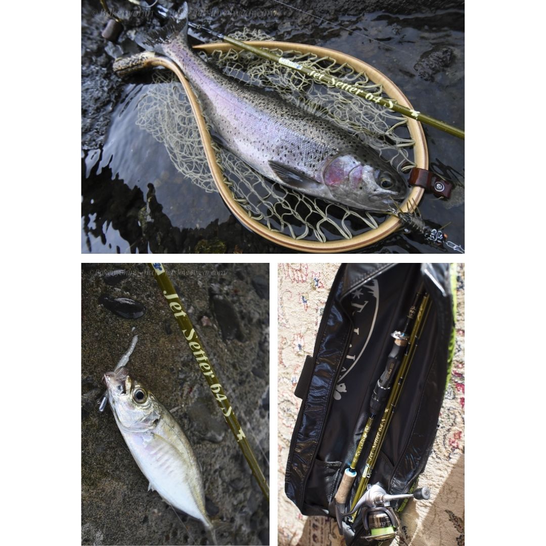 最初は小さなプラグ、軽量なルアーをライトラインで投げるためのジェットセッター。どちらかというと、トラウト族と遊ぶために、と設計されたモデル。小型魚全般、ライトに遊ぶために。