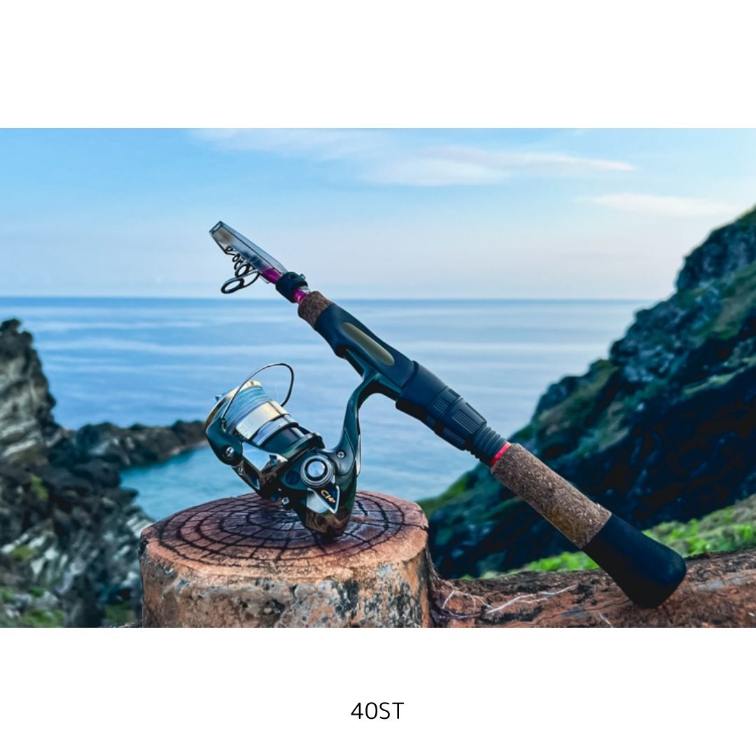携行性に優れるテレスコシリーズの中で最もライトなスピニングモデル。まるで秘密道具のように小さくなり、竿をたためば30センチほどになりますから、かばんやスーツケースの片隅、車のドアポケットにさえ。
