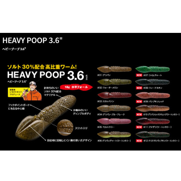 琵琶湖シモタケガイドプロデュースの高比重ワーム「ヘビープープ3.6”」が登場。
