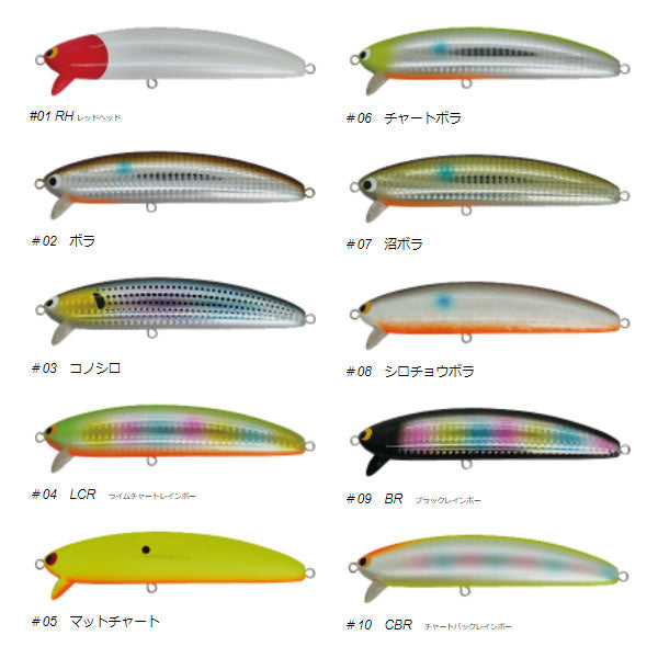 更に少し変わった内部構造を組み合わせる事によって、デッドスロー時のハイピッチアクションと、ワンノックメトロノームサウンドを発生する仕組を持つ。133mm40gと比較的大きめのフォルムによるアピール力により、大型化した秋口のイナッコからコノシロ・ハタハタパターンへと対応。
