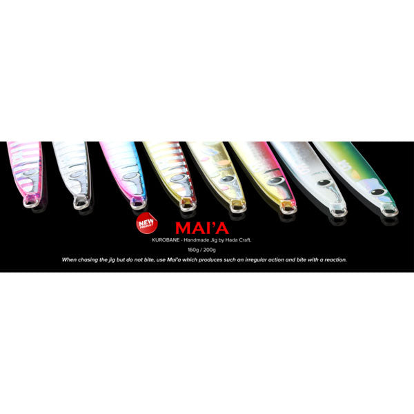 『MAI’A(平神様)』は、ハワイ語で『バナナ』です。ジギングを始めて25年以上が経ちますが、その頃は選択するほど物はなく、今では、ジグも色々在りすぎて迷うくらいです。兼用ジグは沢山。でも、『この魚用』って対象魚を限定するジグは、なかなかありません。それなら 『鰤』に特化したジグを作ってみよう!ハダ工房を立ち上げたきっかけの『ジグ』です。実釣を重ね、何度と微調整を繰り返し試行錯誤の末できました。バナナ風のシルエットと左右非対象からなる形状は極限までの引き抵抗を軽減する事で、 “最小限のアクション”でスイミングし、ジグ自ら自走し、魚をアピールする例のないジグになりました。ほぼセンターバランスで、あえてウエイトをリアーに移す事で、画期的な絶妙なバランスに仕上げました。今までの鉛では演出できないシャクり後の喰わせの間はセンター寄りのリアーのバランスだからこそ。絶妙な間をご体感下さい。癖になりますよ(笑)パイロット&リサーチ&ナチュラルに誘う時は『KAUKAU』。万能な『KAUKAU』が魚に違和感を持たれ(スレ)た時には、ナチュラルなのに波動強化した『holoholo』この2人でもお役に立てない時!つまり、ナチュラル(自然)な動きに反応しない時は、反射的&不規則&トリッキーにアピールして下さい。そんな時に頼りになるのが『MAI’A(平神様)』です。高速ジャークやコンビネーションはもちろんただ巻き・ジャカ巻き・ワンピッチも対応可能です。『ハダ工房』の推奨アクションは 特に低活性な時は、ロッドをジャカジャカあおらずにシェイクする程度のただ巻きしながら、 タイミング(不規則)を図りながらトゥイッチするよう小刻みに誘い 直後に、ロッドの復元力を利用しながら出来るだけ長くジグの移動(スイング)させ ラインテンションを最小限に抜きながらフリーフォールさせる事でジグが自走(自泳)し、ジグ自ら、魚を誘発しバイトさせてくれます。鰤を極めれば、ヒラマサも、カンパチも、マグロも制する!これは、私の長年の経験から実感した事です。『こんなに楽しく!イメージ通りに釣れる!』今までにない新感覚をご体感下さい。