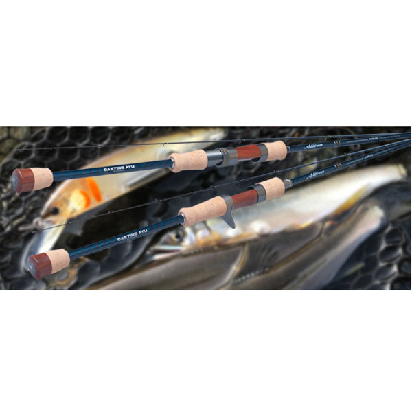 ルアーで狙うアユゲームに向けた専用ロッド“アルティバ” 我々は2020年からルアーで狙うアユゲームを提案しています。「友釣り」の延長ではなく、ルアーゲームとしてのゲームスタイルはあくまでもキャスティングをメーンとしたタクティクスです。アルティバはそんなキャスティングアユに向けた専用ロッドシリーズ。遠投性とライトラインの高い相性を持つスピニングモデルと、狙いのレンジを的確にコントロールできるベイトモデルの2機種をラインアップ。ティップはアユルアーの先駆けであるエスケードの泳ぎをコントロールする繊細さを備え、ベリーからバットにかけて発揮されるパワーは、かかったアユの力強いファイトをいなします。