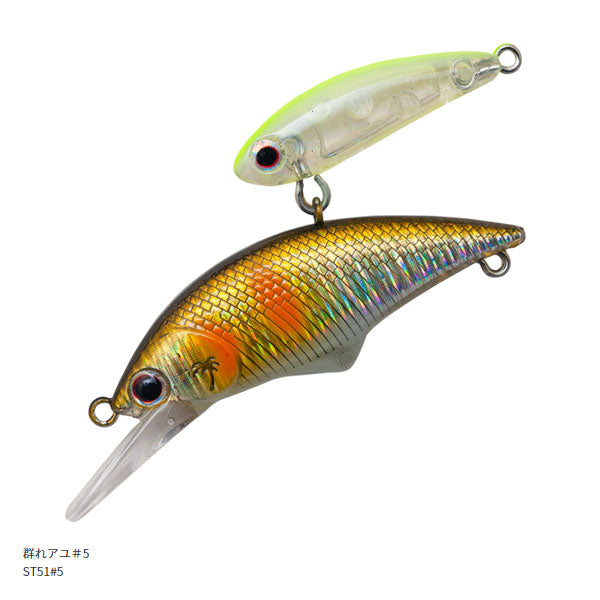 奇抜さが売りではない! 捕食本能に訴えるコンセプトがその姿に現れる。長さや体高さといったサイズではなく複数のミノーを組み合わせることによって、魚にスイッチを入れさせる刺激の一つであるボリューム感を演出するアレキサンドラシェード。ステディリトリーブでは稼働域の大きいジョイントで繋がれた二つのルアーがまるで群れで泳ぐようにシンクロするアクションを見せます。イレギュラーなトゥイッチでパワーを入力すると背中に装着されたShade部がメーンミノーとは相反する動きをして誘惑。流れの中では背中の部分が抵抗となりルアーがアングラー側に寄ることを抑え、よりナチュラルにフィーディングレーンを長く漂わせることが可能です。アップクロス、クロスで威力を発揮、基本的なアクションはシェイク。大きくルアーを動かすというより背に載せたShade部分を動かす程度でドリフトさせて送り込むことが有効です。