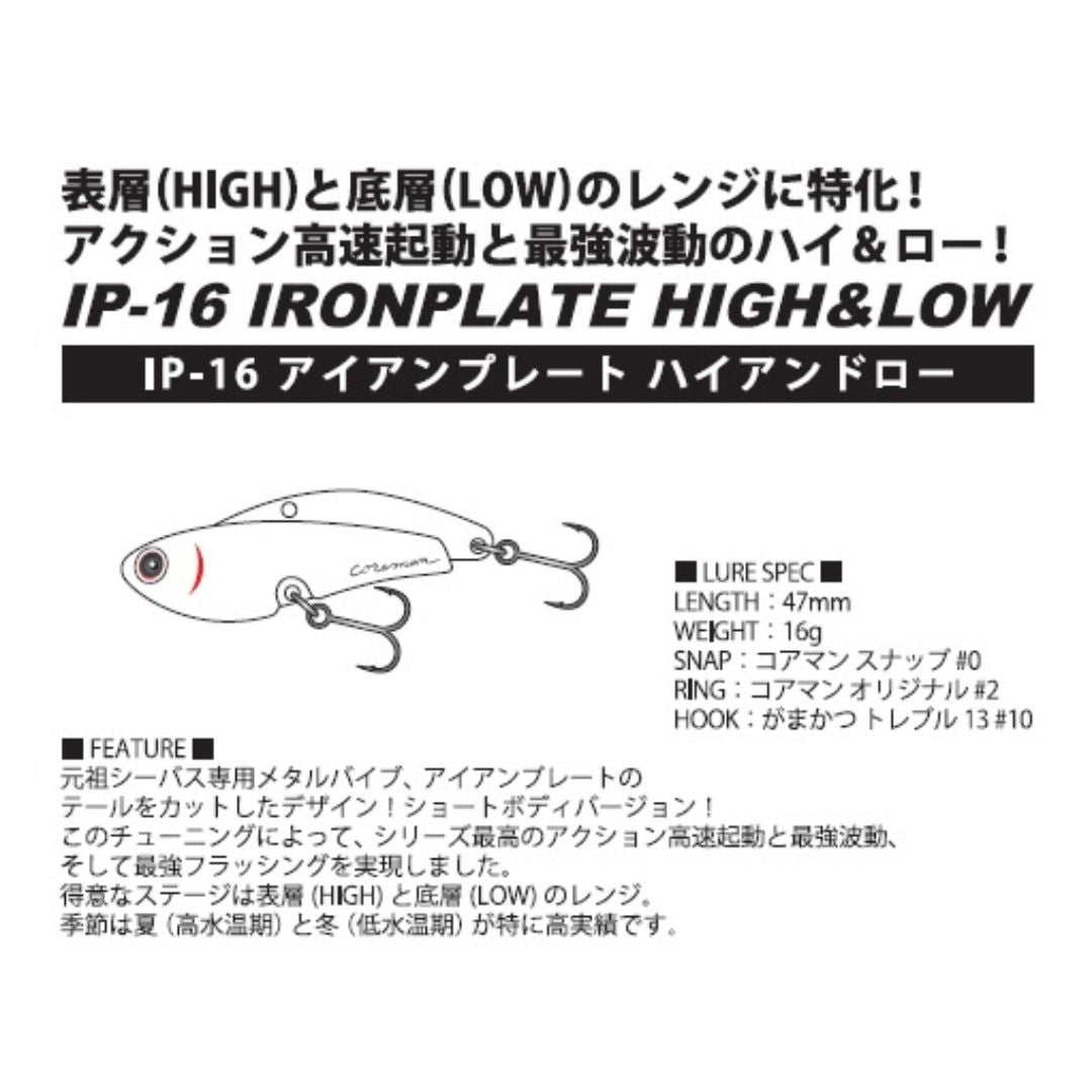 長さ:47mm 重さ:16g スナップ:コアマンスナップ #0 リング:コアマンオリジナル #2 フック:がまかつトレブル13 #10