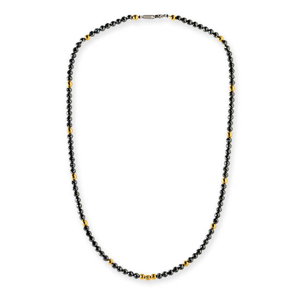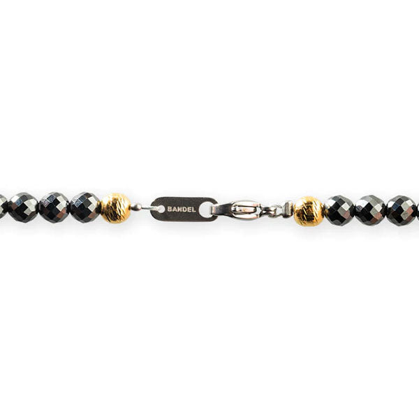 唯一無二の輝きを放つ、精巧な60面カットを施したブラックのビーズはフェライト磁石。装飾の施されたゴールドやシルバーのビーズはステンレススティール製。そして一際目立つレッドのビーズはアルミニウムを採用しています。