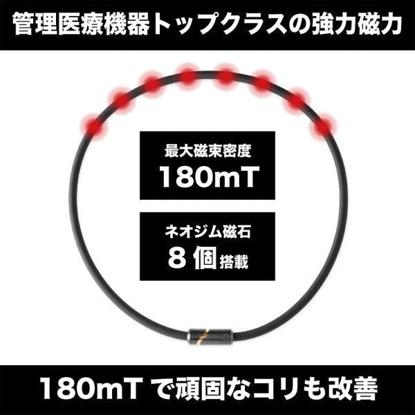 ループに内蔵する磁石には永久磁石の中でも最強の磁力を発生するネオジム磁石を採用。直径4.8mmの太いループに大型のネオジム磁石を内蔵することで最大磁束密度180mTを達成。