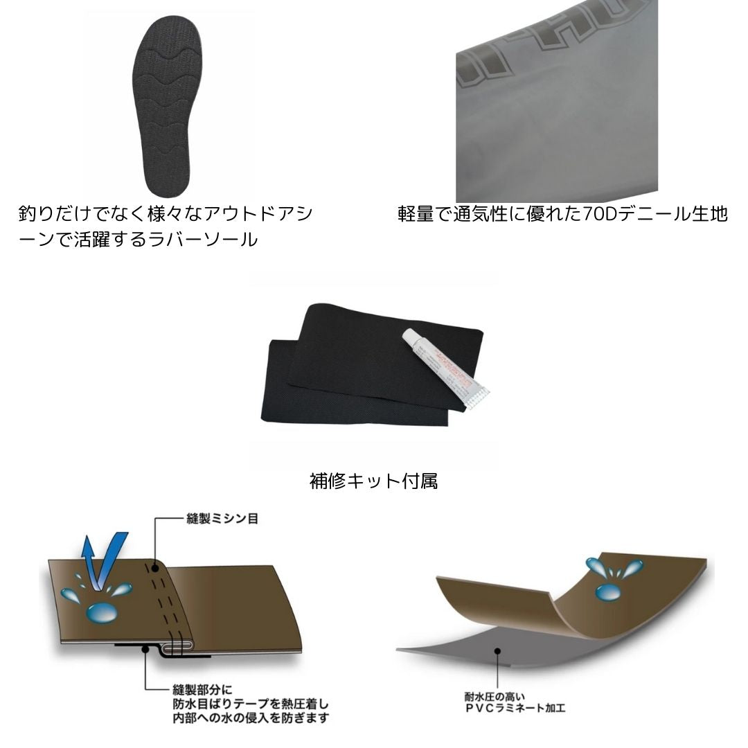 長靴感覚で手軽に使用できるため、小規模な河川や渓流域での釣りやアウトドア、作業等に最適です。