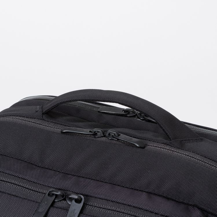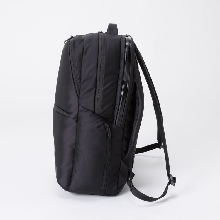 ビジネスシーンとさまざまな日常を行き来するというコンセプトでのシンプルで機能的なデザイン。ウィーラー用のスリットを配備した成型バックパネルと、立体的なショルダーハーネスは、荷物が重くなっても快適な背負い心地が持続する設計です。