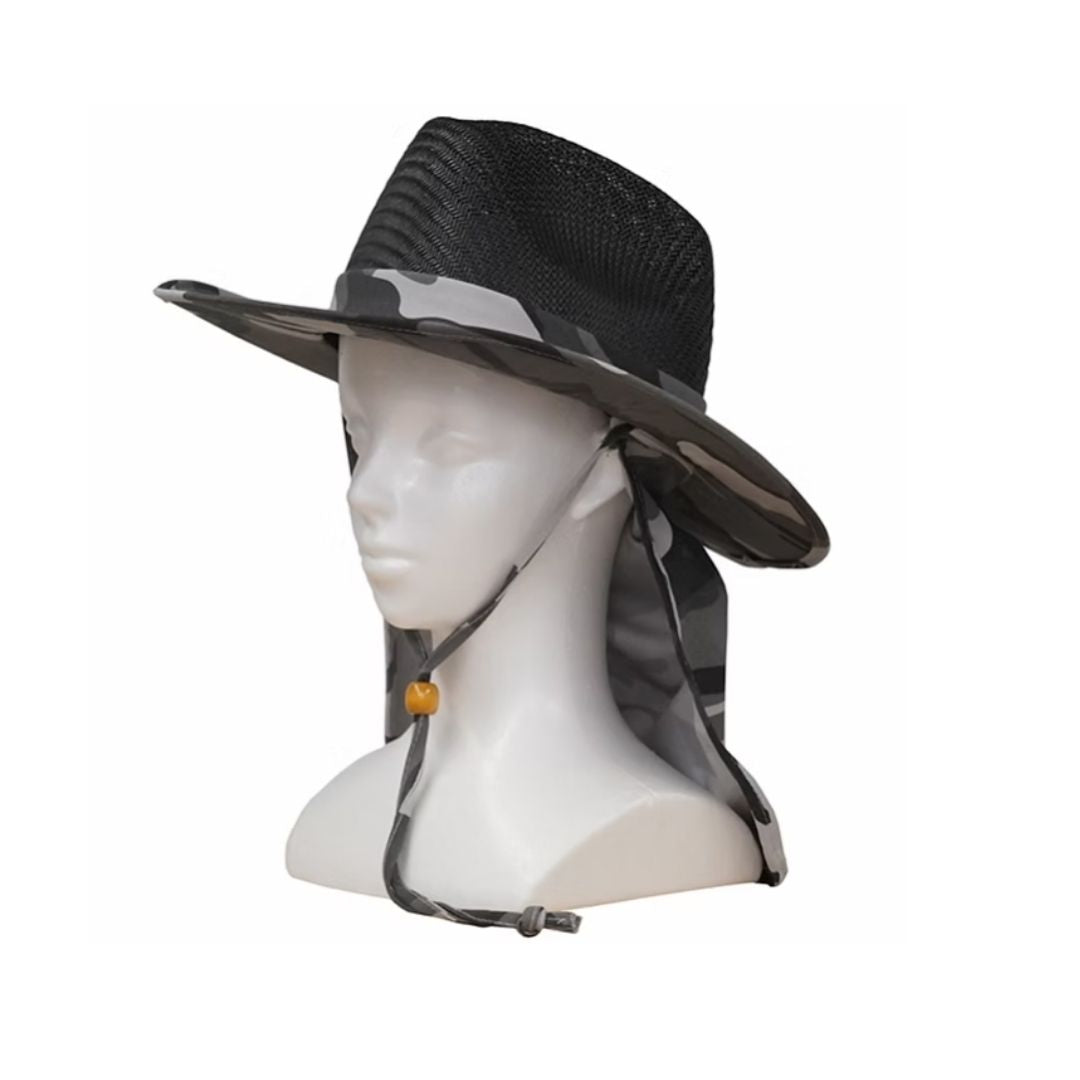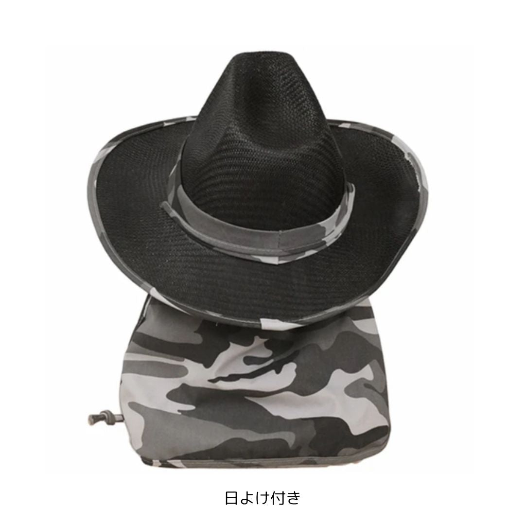 WPC-397 2wayブラック日よけ付き麦わら帽子