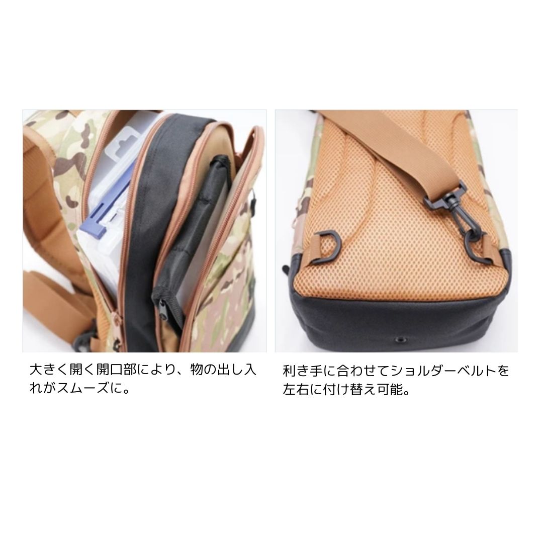 利き手に合わせてショルダーベルトを左右に付け替え可能で、使いやすさを追求しました。