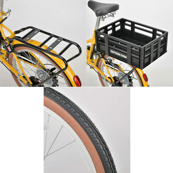 装備:LEDオートライト、コンテナバスケット、リング錠、バスケット、リアキャリア、外装6段変速、フルカバー泥除け
