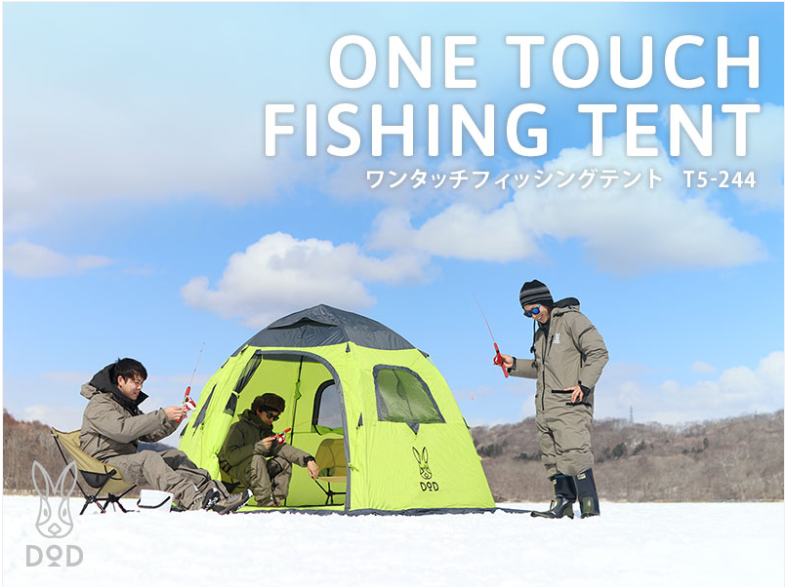 約15秒の簡単設営!ワカサギ釣りに最適なワンタッチフィッシングテント。5人用のワイドサイズ。