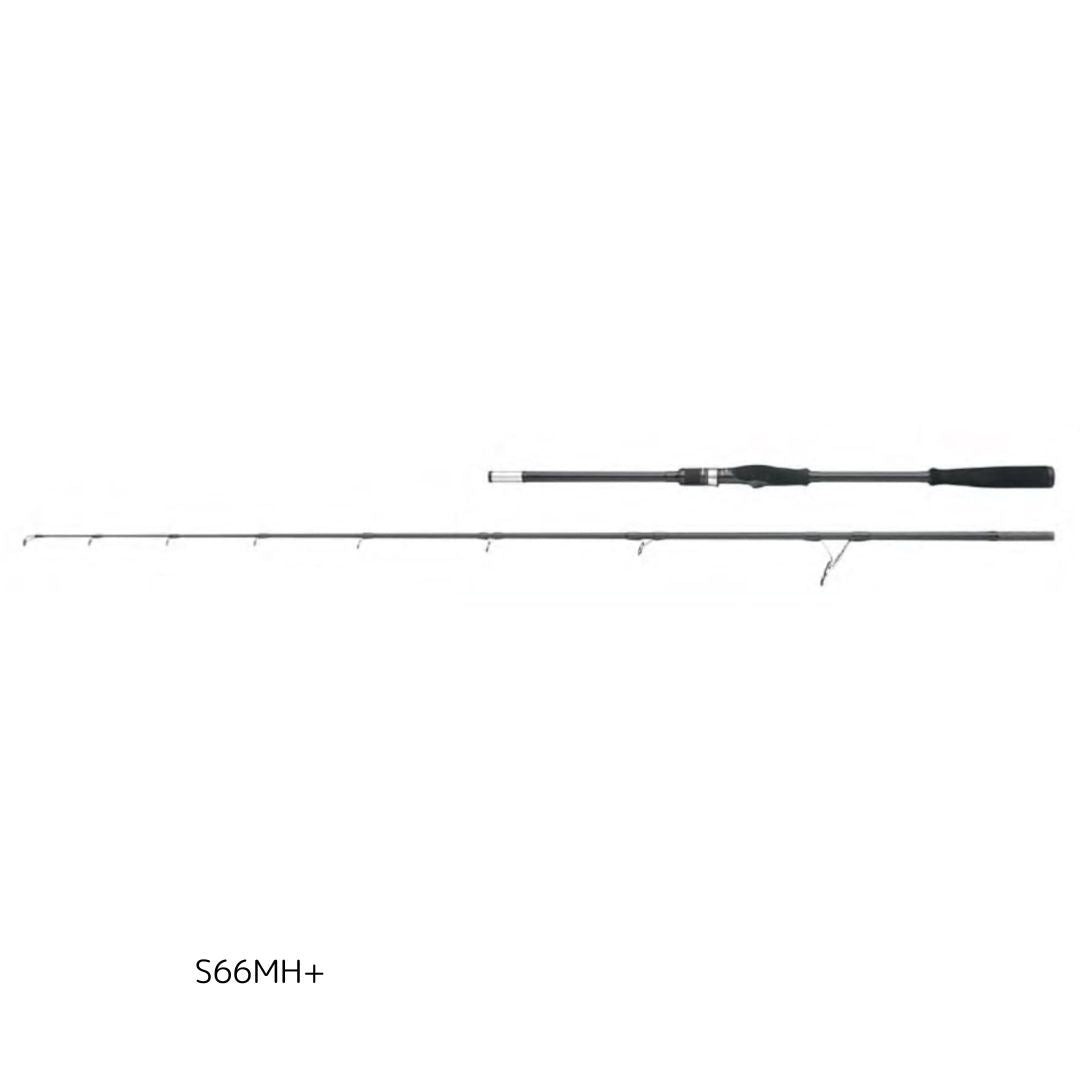 他に類を見ないビッグベイト専用ショートレングススピニングモデル。ビッグベイトゲームはロッドにかかる負荷も大きいが、新素材の恩恵により圧倒的な力強さと異次元の軽さを両立。米とモデルと比べ汎用性の高い適合ルアーと糸ふけのコントロールが重要になるトップペンシルの扱いに優れる。ピン打ちのアキュラシーを向上させたS66MH+はオカッパリ・ボート関わらず、スピニングを得意とする方にこそ使っていただきたい。