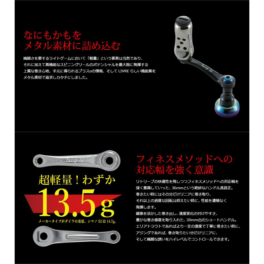 繊細さを要するライトゲームにおいて「軽量」という要素は当然であり、それに加えて高機能なスピニングリールのポテンシャルを最大限に発揮する上質な巻き心地、手元に得られるプラスαの情報、そしてLIVREらしい機能美をメタル素材で追求しカタチにしました。