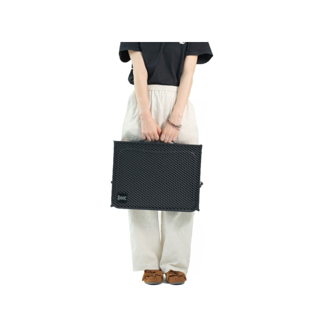 3つ折り構造を採用し折りたたむと通勤バッグ程度までコンパクトに収納できます。