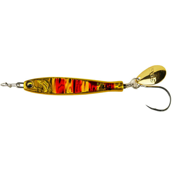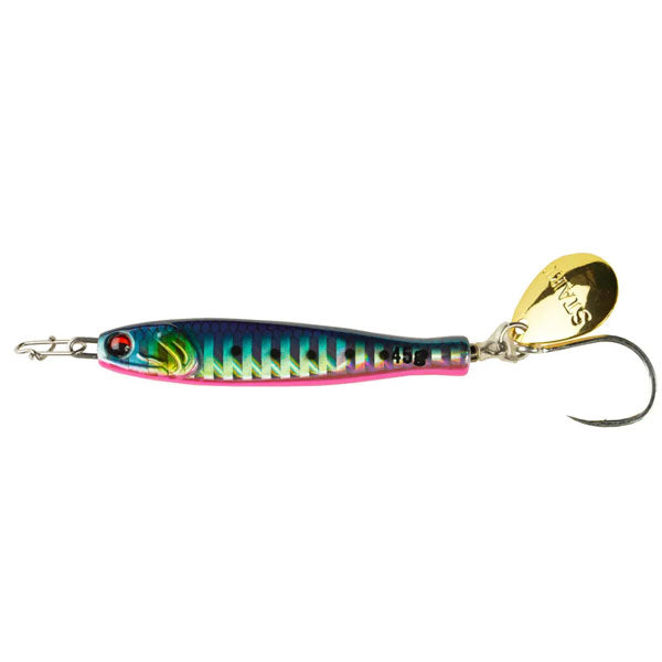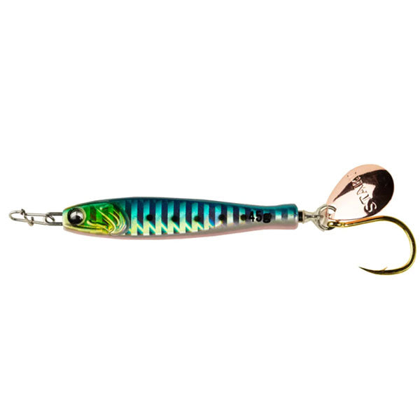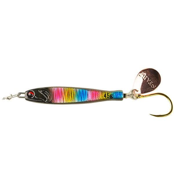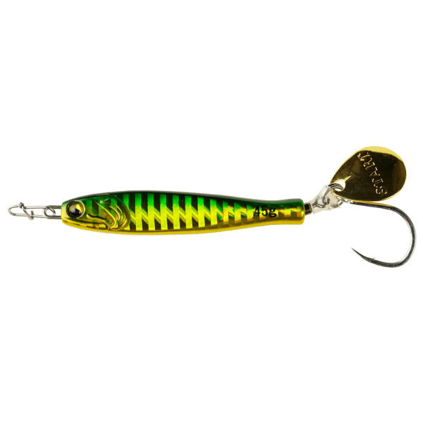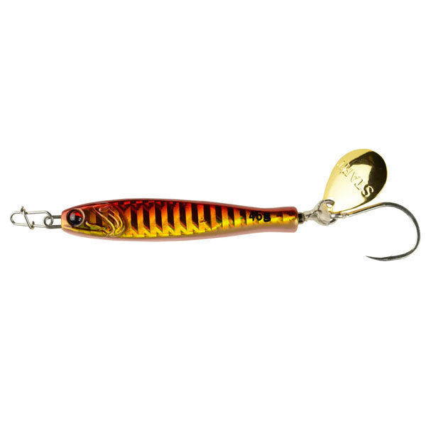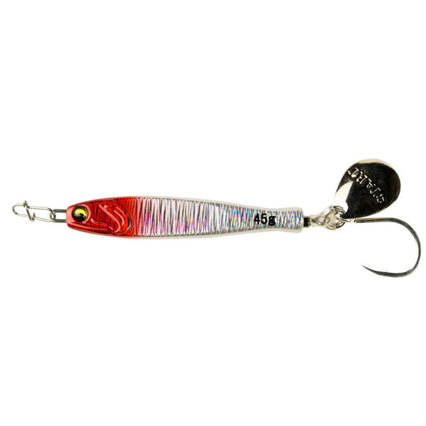 釣果にこだわったらこの形。STARTから常識を覆すジグの提案「TG RUNNER」 瀬戸内をホームとしている以上「ジグを作る」という構想は何年も前からあった。船長仲間からの要望もあり、実際に形に。STARTらしいジグを作る。それは「とにかく釣果にこだわる」ということ。私達の答えは「小型化」と「快適性」でした。サワラが好んで捕食する小型のイワシを演出するべく、ボディからブレードまでの距離を最小限にすることができる埋込式スイベルの「ピアスシステム」を考案。結果全長を約9%削減することに成功しました。また、1日中ストレスなく巻き続けられることも釣果にこだわるには必要。細部まで、とにかく巻き抵抗を軽くする工夫を凝らしました。これまでの常識を覆す「TG RUNNER」。現場主義でとにかく釣果にこだわったそのジグをぜひお試しください。