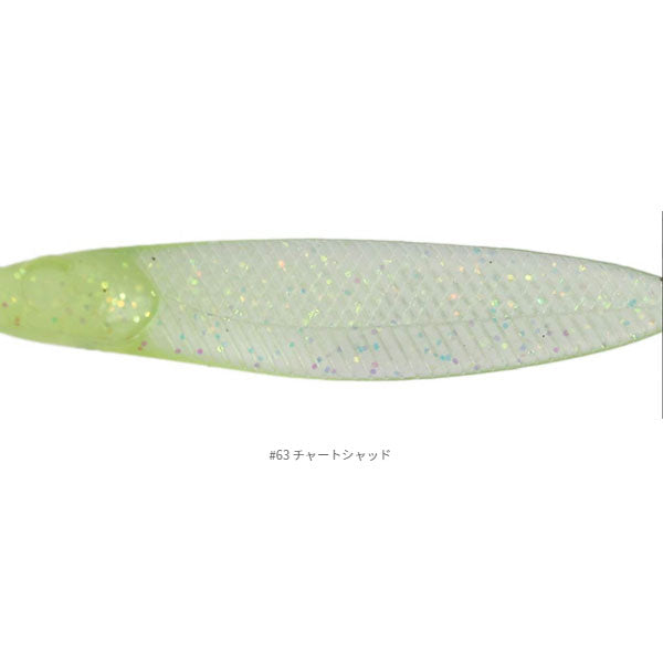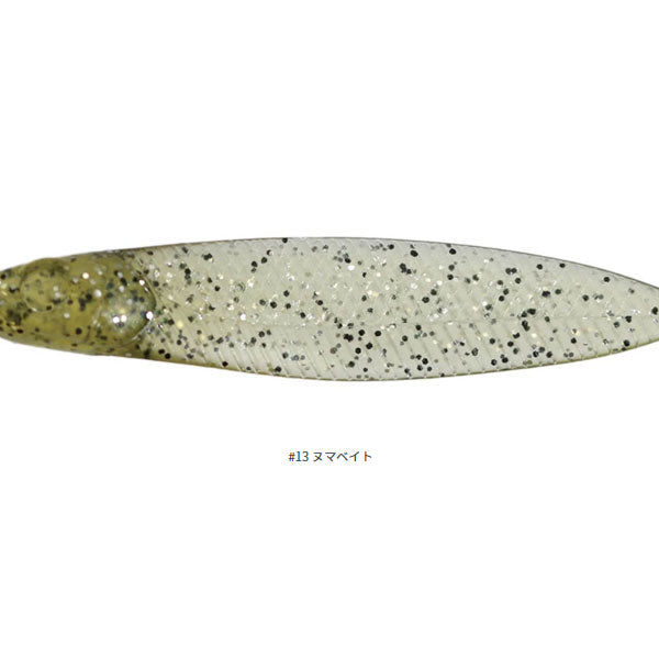 連結部でカットすることで、2ndボディのみでの使用も可能とするツインボディ構造を採用。マス鈎をチョン掛けしやすいよう、1stだけでなく、2ndボディにもヘッドを設けました。最大の特徴であるフラットテールは、レスポンスを向上させるために極限まで薄肉化。ロッドワークにより艶かしいアクションを演出できる上、僅かな水流でも自発的に揺らめき、バスのバイトを誘います。