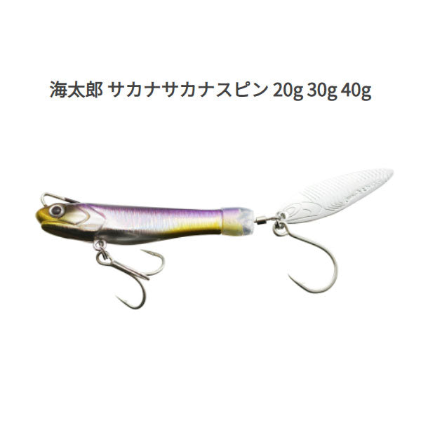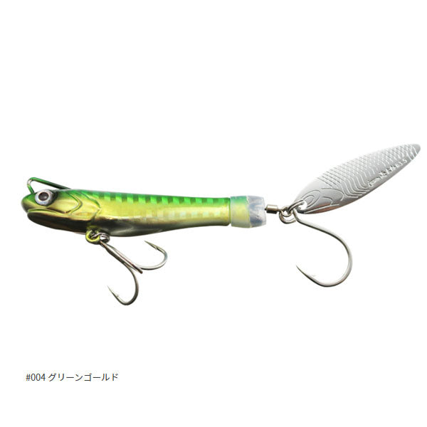 カタクチイワシをデザインベースにしたボディとブレードを持つテールスピンジグ。低重心ワイドボディは圧倒的な飛距離を生むだけでなく、フック絡みを軽減させます。水中での安定姿勢を保つために、ラインアイは長穴異形に設定しました。ブレードにはナローウィローリーフの海太郎オリジナル「カタクチブレード」を採用。シーバスや青物をはじめ、アジ、メバル、メッキ、太刀魚など、あらゆる魚に効果的です。