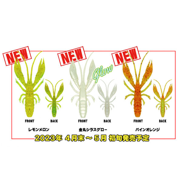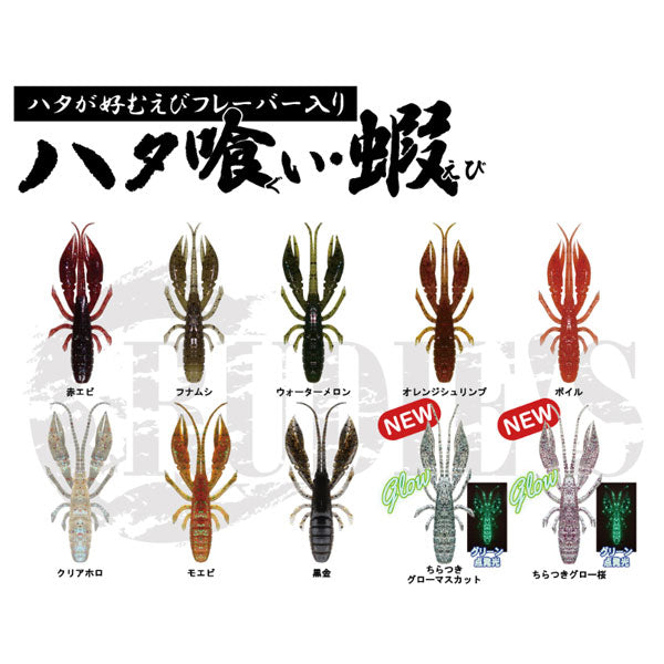 「ハタ喰い・蝦」は、ターゲットが警戒心を抱くことなく、即座にバイトへ繋がるよう、リアルなシルエットを追求、また、まるで生きているかのように艶めかしく演出するよう、爪の根本にはスリットを入れており、アクション、及び、水流の動きに追従するところに重きをおいた。