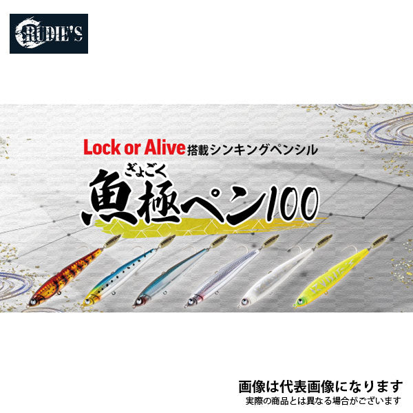 根掛かり回避に特化したシンキングペンシル「魚極ペン100」が満を持して登場!本体上部に背負わせたストレートフックは魚からのバイトで可動する"Lock or Alive"システムを初搭載! 根魚はもちろんのこと、あらゆるフィッシュイーターに効くスペシャルプラグである。