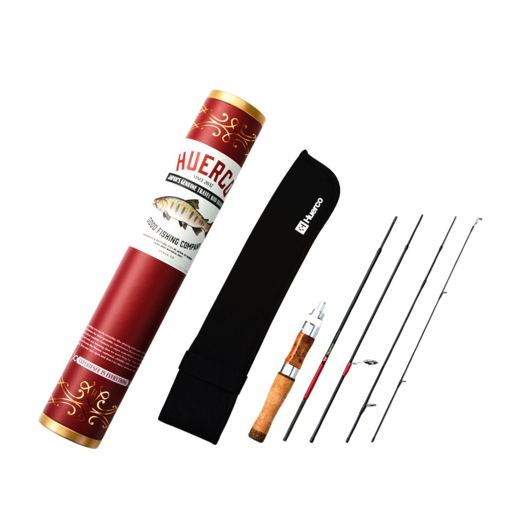 Huerco GTシリーズより渓流・エリアのトラウト向きパックロッドが登場です。シリーズ最小の4フィート6インチ、仕舞寸33.3センチと、渓流のみならず小さなフィールドの、小さな好敵手にうってつけのコンパクトなサイズ。細身ながらも、ほどよい張り感としなやかなレギュラーテーパー、素直なブランクの曲がりは、20センチほどの魚でもやりとりを存分に楽しめるトラディショナルな味わいです。リールシートには天然木(鳥目木)を使用し、トラウトロッドにはかかせない雰囲気と、シルバーのオリジナルメタルパーツ、コルク&ラバーを組み合わせたグリップデザインは、オリジナリティを損なわないフエルコならではの仕上がりです。