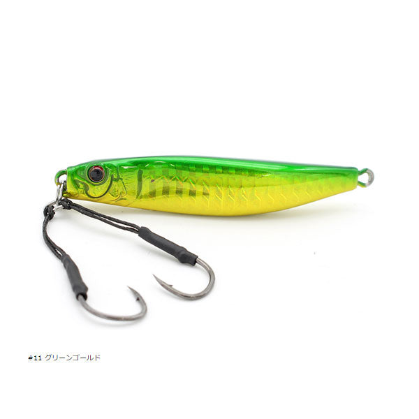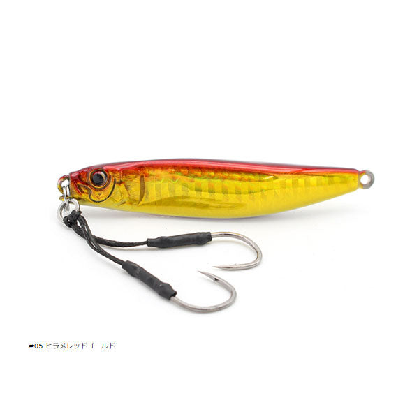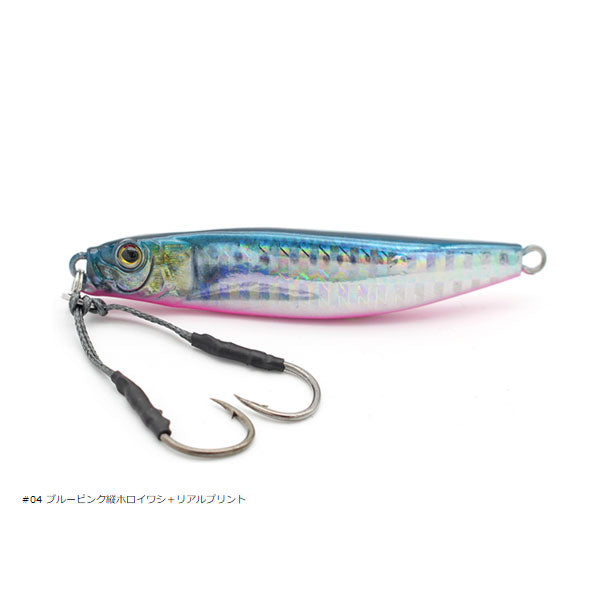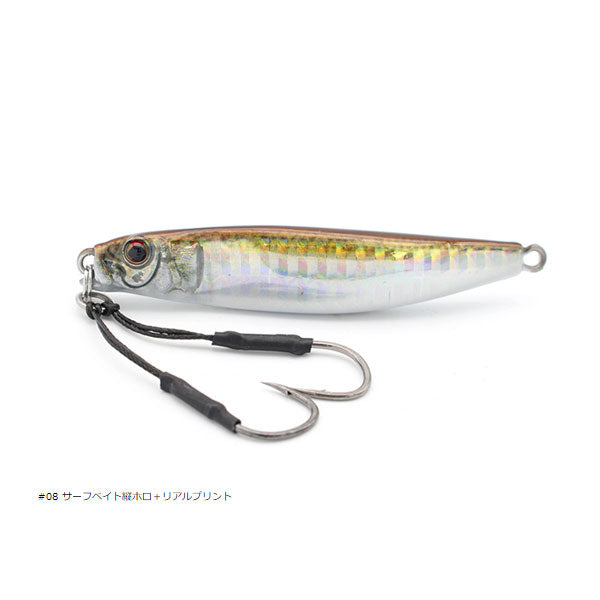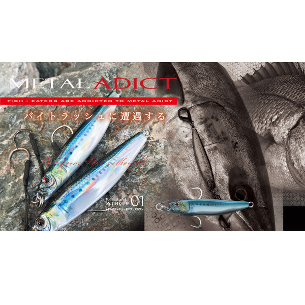圧倒的な釣果を誇るコンパクトジグ アクション、フォール姿勢、ライン絡みのなさ、リアルさ、フォルム、サイズ感。それら全てを兼ね備えた唯一無二のメタルジグが「METAL ADICT type-01」です。プラグ並みに作りこまれた造形とリアルプリントを施した圧倒的なリアルさに加えて、スプーンの要素を取り入れた左右非対称のボディはタングステン並みのコンパクトなシルエットでベイトを演出します。センターバランスに近いボディは飛距離とアクションを両立させ、投げてしゃくるだけではないショアジギングの奥深さを体現します。左右非対称ボディは、リトリーブ時にひらひらと動き、プラグライクな釣りでもしっかりとアピールします。フォール時にも不規則にひらひらと舞うアクションは、フラッシングと相まってターゲットを強烈に惹き付け、青物からシーバス、根魚にサーフのヒラメゲームまで対応してしまいます。同サイズ帯で際立つコンパクトなフォルムは、十分な飛距離を生むとともに、活性の低い状況でも思わずターゲットに口を使わせてしまうはずです。