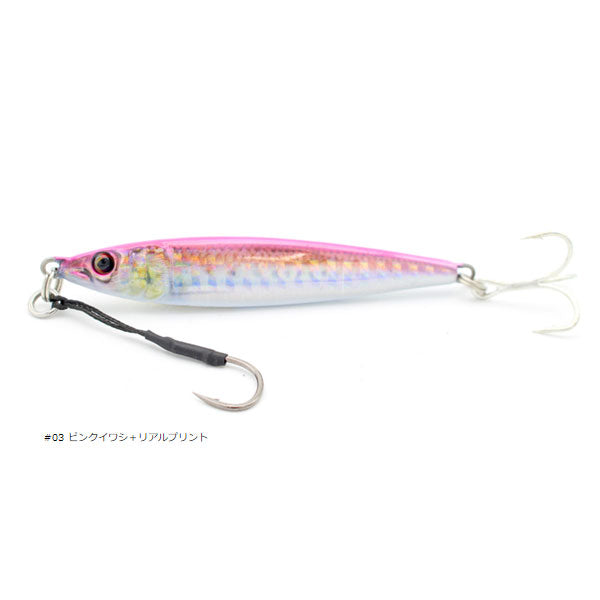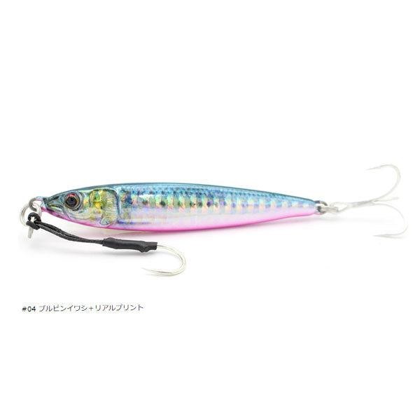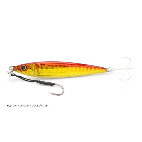 薄身ストレートベイトフォルムボディー ハイレスポンスの基本性能を充実させたストレートリアルジグ。センターバランス+薄身ボディーがキビキビ泳ぎヒラヒラ舞い、アングラーのテクニックに呼応するアクションを実現。フォール時のピラッピラッ木の葉のように舞い落ちるアクション、フック絡みしないセッティングでナチュラルに確実にバイトを誘います。また、打ち抜きリング仕様のアシストフック+大型トレブルフック採用でバイトチャンスを逃しません。これで釣れないわけはないという使い続ける安心を持たせてくれるハイスタンダードジグです。