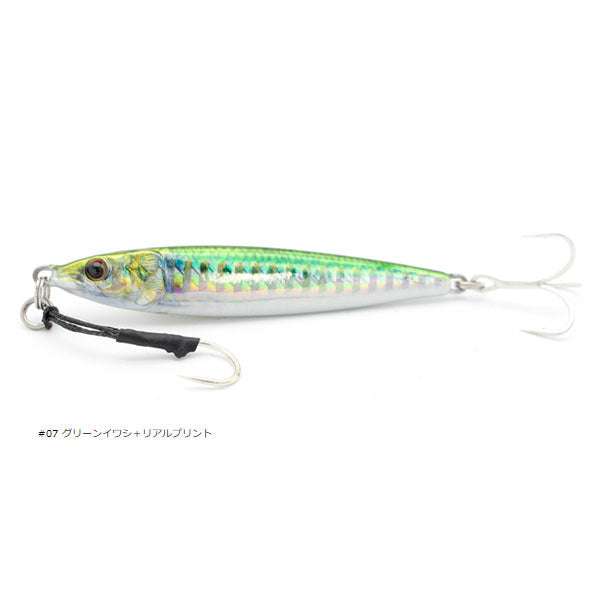 薄身ストレートベイトフォルムボディー ハイレスポンスの基本性能を充実させたストレートリアルジグ。センターバランス+薄身ボディーがキビキビ泳ぎヒラヒラ舞い、アングラーのテクニックに呼応するアクションを実現。フォール時のピラッピラッ木の葉のように舞い落ちるアクション、フック絡みしないセッティングでナチュラルに確実にバイトを誘います。また、打ち抜きリング仕様のアシストフック+大型トレブルフック採用でバイトチャンスを逃しません。これで釣れないわけはないという使い続ける安心を持たせてくれるハイスタンダードジグです。