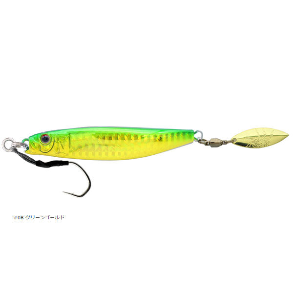 コンパクト&万能アクションを昇華 type-01のコンパクトさ、不規則なフォール、リトリーブ時の動きはそのままに近海のライトジギング、本格的なショアジギングモデルとして開発。独自の左右非対称ボディーアクションは、圧倒的で万能な釣果を叩き出します。本体に大型のパイクフックを標準採用。更にはヒラリとベイトライクなアクションに変えるオリジナルゴールドブレードを標準装備しています。フォルム、形状、使いやすさ。さらにリアルさを加え、様々な魚種にアプローチします。
