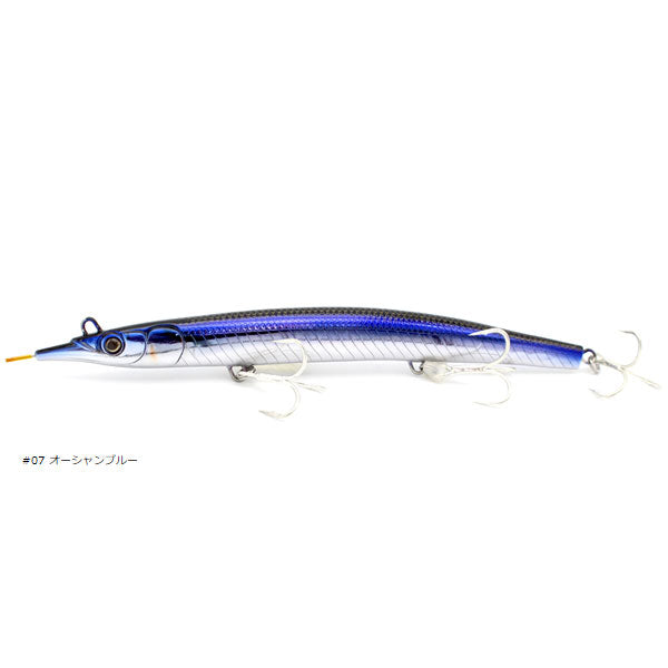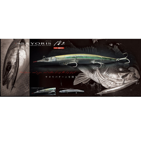 使えば釣れる。釣れるから使う。サヨリをイミテートし、徹底した釣果主義から誕生。 国内外で人気の唯一無二のサヨリ型シンキングペンシル「サヨリス」の大型サイズSAYORIS-182mm。サヨリス独特の微ロールアクションを踏襲し、よりリアルフォルム、確かなシャローレンジキープ性能を備えたモンスター攻略モデルです。初回は大型トレブルフックを3個備え、よりショートバイトをものにするシリコンチューブ装着のカスタムモデルで発売。通常はトレブル×2のノーマルセッティングでもカスタムセッティングでも変わらないナチュラルアクションが魅力です。リアルベイトサイズのサヨリをイミテートしたナチュラルフォルムにより182mmながら大きさを感じさせず、中~モンスターまで確実にアプローチします。シンペン+ジャークベイトとしてオフショアでの実績も多数です。ヘビーウェイトモデルとして54gバージョンもラインナップ。ボディーは中空ながらワイヤーを貫通させる事によりモンスターに耐える強度を確保しています。