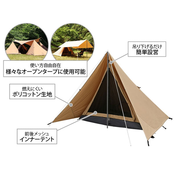 材質 アウターテント、インナーテント:ポリコットン(ポリエステル65%、綿35%)インナーテントフロア:210Dポリエステル(PUコーティング)