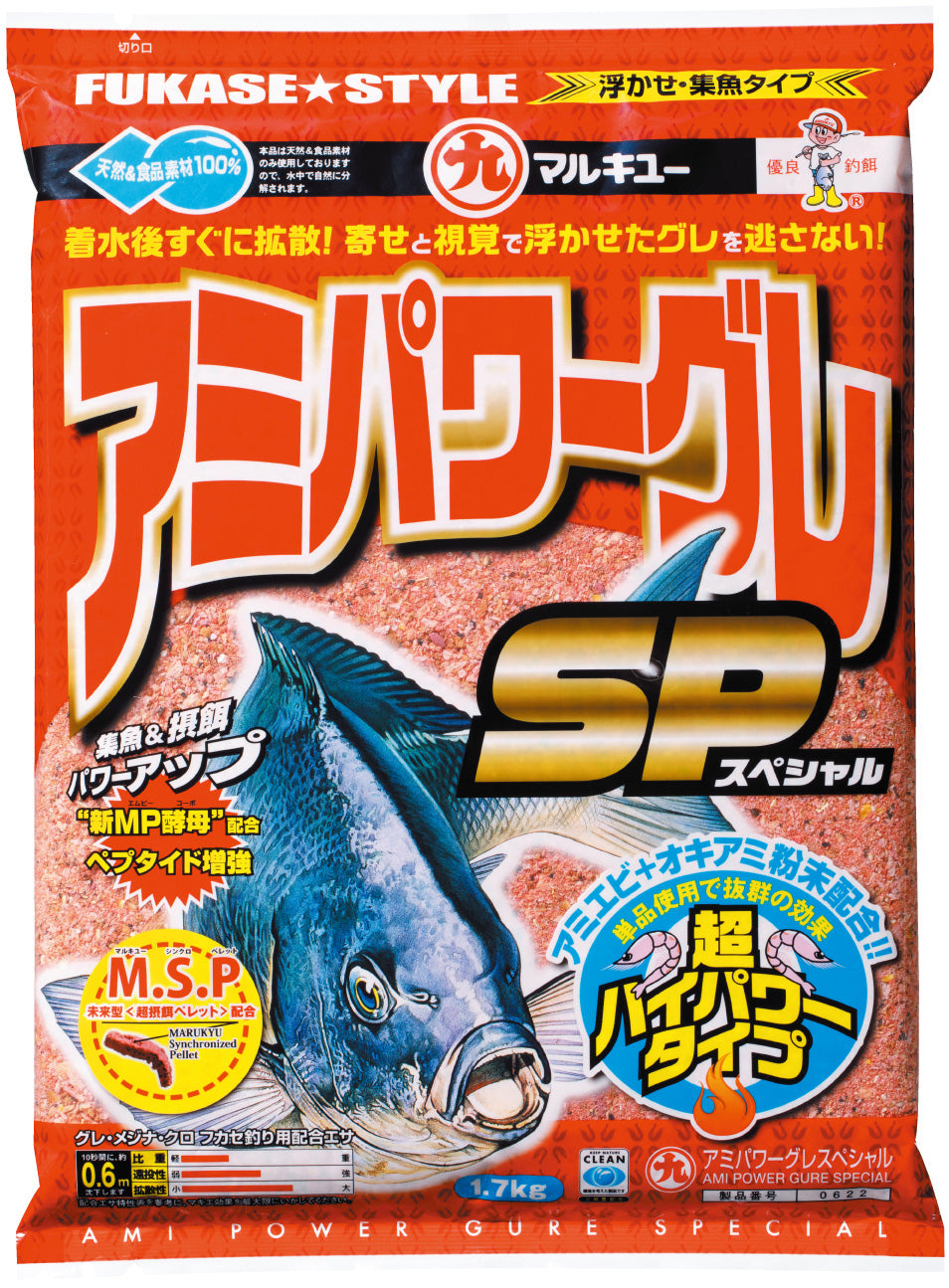 食いを促進する『M.S.P(マルキユー・シンクロ・ペレット)』を配合。浮かせたグレの食い気を持続し、逃がしません。