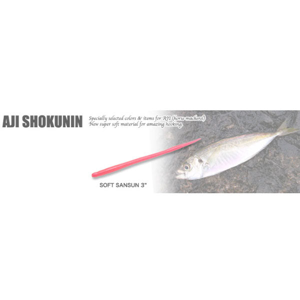 もともとコアなアジングアングラーのなかでシークレットベイトとして使われていた「サンスン」を、アジング専用仕様にリファインしたのが「アジ職人 ソフトサンスン」。アジの微弱な吸い込みバイトに対応するため、超ソフトマテリアルを採用。艶かしくしなやかに誘い、そしてバイト時には弾くことなく口の中へスムーズにおさまります。さらにノンソルト仕様にすることで、フォール時間を長く作ることができ、アピール力がアップ。カラーバリエーションもアジング専用ラインアップ。「アジ職人 アジマスト」とのローテーションで、死角の無いアジングゲームを可能にします。