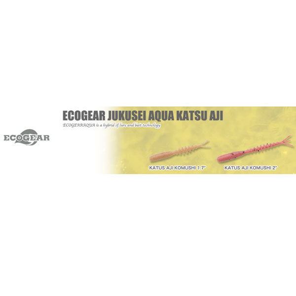 「エコギア熟成アクア 活アジコムシ」 アジがアミエビなどの小型ベイトを偏食するようなシビアな状況下で、無類の強さを発揮するコンパクトアイテムが「エコギア熟成アクア 活アジコムシ」です。 後部のリングボディが極めて微弱な波動を発生させ、今まで攻めあぐねていた、波動やシルエットにうるさいセレクティブなアジを魅了します。また、リブがしっかりと水を掴んで適度な抵抗感を生み出し、フォールスピードを抑えることでバイトチャンスが格段に増加。さらには、「熟成」という手法により獲得した集魚&摂餌成分を大量に拡散し、驚異的な集魚、摂餌効果を発揮し、深く確実なバイトを引き出します。より的確なルアーセレクトが要求される現在のアジングシーンにおいて、欠かすことができない切り札アイテムです。