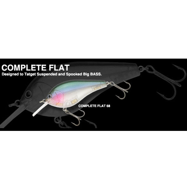 「コンプリートフラット68」 アフタースポーンや高水温期にニュートラル状態で中層にサスペンドするバスや、ハイプレッシャーによりバンクを離れサスペンドするバスに効果的なのが「コンプリートフラット68」。リアクションバイトを誘うためにコンタクトさせるボトムや障害物が無い中層でも、フラットサイドならではのヒラヒラとした動きとカラーの明滅をハイピッチに繰り出し、しっかりとバイトを引き出せるアクションに仕上がっています。軽すぎない適度なリトリーブ感でイメージ通りのレンジやコースコントロールを可能にし、一般的にフラットサイドが苦手とするブッシュやレイダウンも攻められるスナッグレス性をも備えます。水色がいつもよりクリアアップしてしまったり、晴れて風も無いようなハードベイトが効かないと思ってしまうタイミングでも、巻きの攻めを可能にしてくれるのが「コンプリートフラット68」です。
