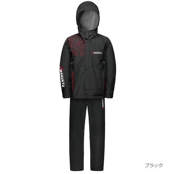 雨・風を防ぎ釣りを快適にする透湿性に優れたスタンダードレインスーツ れた透湿性・防風性・耐水性を兼ね備えた3層レイヤー生地で、雨の日でも快適に釣りができるスタンダードレインスーツです。生地は透湿性があるため(透湿度20,000g/m2/24hr)、汗による蒸れを軽減し、べたつきを抑え快適な着心地が持続します。耐水圧は20,000mmとなっており、雨の中の釣りでも安心です。ミドル生地の透湿防水フィルムには防風性があり、外部からの冷たい空気の侵入を防ぎます。腕の上げ下げをスムーズに行える立体設計により、釣りの動作を妨げず裾のずり上りを軽減しました。ワンタッチでフードの調整が可能なアジャスター付き。袖口、ジャケット裾、ズボンの裾にも絞り用のドローコードがついており、裾幅の調整が可能です。裾を体にフィットさせることで雨や風の侵入を軽減します。フロントファスナーには小型のホイッスルが付属し、緊急時にも役立ちます。※各カラー共通でブラックのパンツがセットになっています。