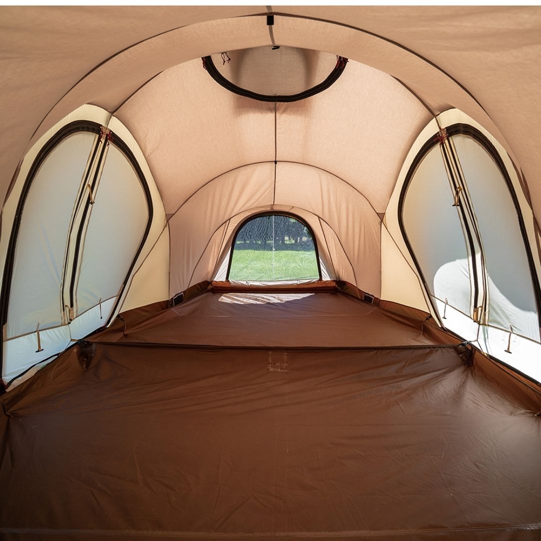 唯一無二の存在感を放つ、曲線フレームワークで広さと剛性を実現。取り外し可能なグランドシート付属で、レイアウト自由自在。
