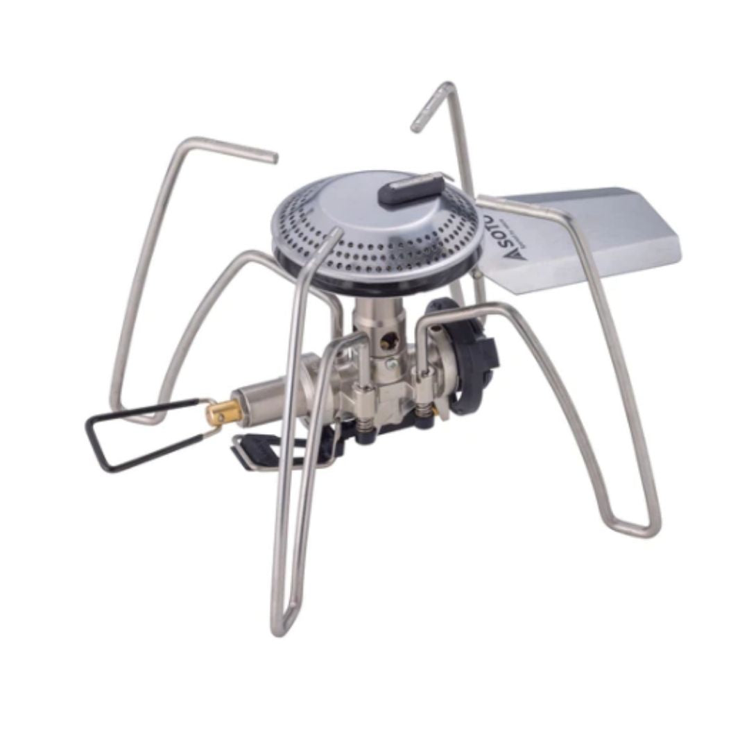 レギュレーターストーブ(ST-310)と比べ火口が大きく ミドルサイズのクッカー底面を広範囲でカバー。 火力も3.3kW(2,800kcal/h)へアップ。