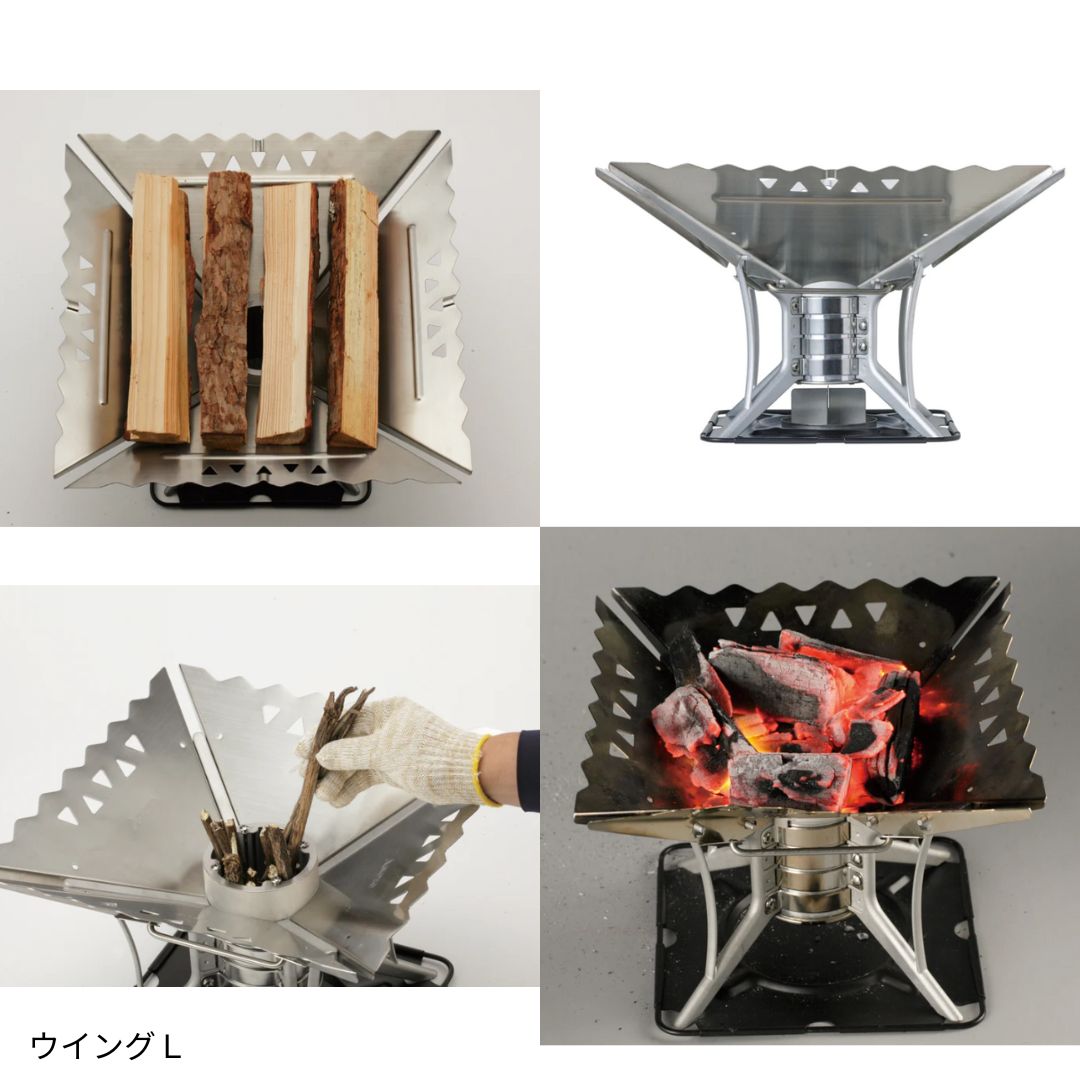 着脱式のウイング(火床)により、焚き火台 の大きさを変えられます。