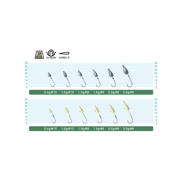 メバル専用の超細軸ジグヘッドです。ムチャクチャ刺さりがイイのはもちろんですが、ラインを通しやすいアイ形状や、水平スイミングを実現するバランス、凸出部分が少なく藻場でも根掛かりしにくい細身フォルム。折れば軽量化できる弾頭部。