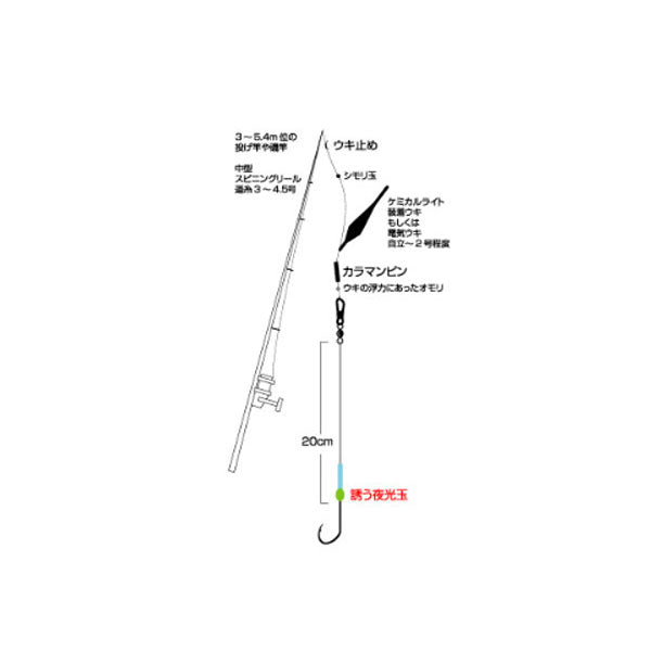 速攻手返し一本鈎 細くしなやかなワイヤーで喰いが良く、シンプル1本鈎で手返し抜群。時合を逃さない。ウキ釣り、引き釣りと状況に合わせて万能です。