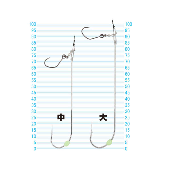 早合わせOK!&簡単エサまっすぐセット ●早合わせを可能にした太刀串鈎採用●鈎軸がエサを貫通しているのでどこを噛まれても掛かる●エサをしっかりホールドするWエサ止め●簡単にエサをまっすぐセットできるので食い抜群●ノーシンカー、飛ばしウキ釣法にも対応 Point1:誘いのコツ①糸ふけをとる②1mほどゆっくり竿を立てて戻すかリールを1~2回巻いて止める③エサがゆっくり水平フォール Point2:合わせのコツ アタリがあったらそっと糸を張り、太刀魚の重みを感じたら合わせてください。フォール中(水平姿勢時)に喰わせるとフッキング率が上がります。