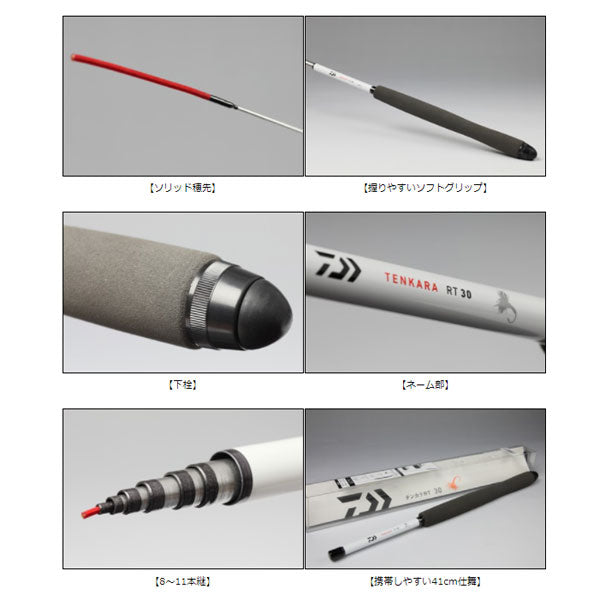 日本の伝統釣法のひとつであるテンカラ釣り。そのシンプルさとそこに秘められた奥深さが、近年欧米を中心とした海外で高く評価されており、愛好家も増えている。伝統に裏打ちされたテクニックを基本としながら、タックルの進化を受けてよりシンプルでより釣れるテンカラスタイルを確立したのが「レベルラインテンカラ」。今やテンカラ釣りのスタンダードとなりつつある。また、テンカラ釣りが世界的に注目される中で、「毛バリ=フライ」という共通のツールを持つこの2つの釣りが融合するのはごく自然な流れであり、そのシンプルな魅力をリスペクトしたフライフィッシャーマンたちから生まれたのが「フライスタイルテンカラ」。テンカラの効率性を重視しながら、フライフィッシングで広く使われるフライパターンを積極的に取り入れることでよりゲーム性の高い新たなテンカラ釣りを提唱する。「テンカラRT」は、より手軽にテンカラ釣りを楽しめるよう開発されたテンカラ竿。仕舞寸法41cmの小継仕様でデイパックにもすっぽり収まる携帯性の良さが魅力。重めのテーパーラインにも対応し、操作性を重視した先調子に耐久性に優れたソリッド穂先を搭載。滑りにくくソフトな感触が心地よいグリップなど、テンカラ竿に求められる基本性能を高い次元で備えている。テンカラ釣りに挑戦してみたいビギナーはもちろん、ベテランアングラーのサブロッドとしてもおすすめ。