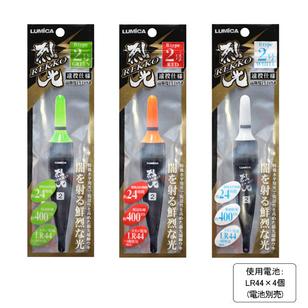 ※烈光シリーズは「非自立式」の電気ウキとなります。※電池別売りとなります。※使用電池にはルミカ製「ボタン電池LR44×4個セット」をお買い求め下さい。※電池をセットした状態で本体をしめると発光します。※隙間が無くなるまでしっかりとしめてからご使用下さい。 内部に水が入ると破損する恐れが有ります。