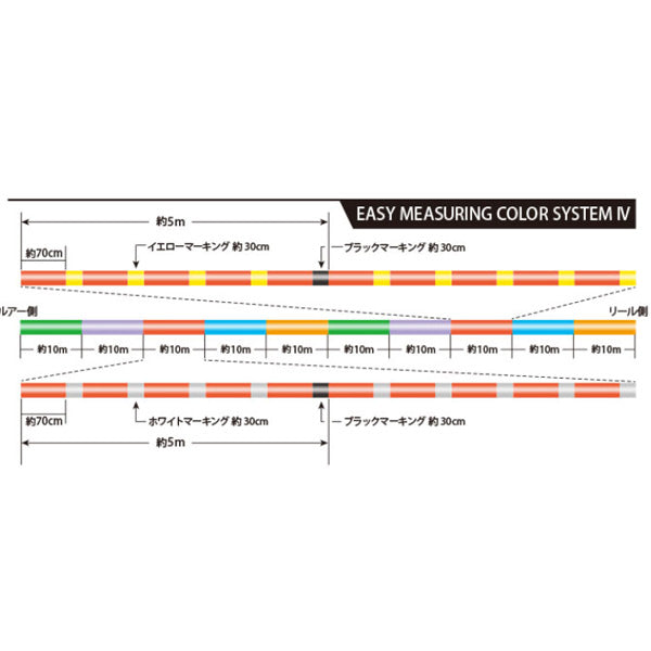 ●Smooth Surface加工(SSP)を張りのあるULT-PEに施すことにより、極上の滑らかさへとさらに進化。この極上の滑りがもたらすメリットが圧巻 のフォールスピード。真円かつ滑らかさによりライン表面抵抗を可能な限り少なくした事で、二枚潮も関係なく誰よりも速くポイントを直撃し船中のファー ストHITを奪い獲る。また、ガイドへの摩擦抵抗は大幅にダウン。ファイト時にロッドが絞り込まれガイドへ干渉する場合にもラインはスムーズに海中へ 送り込まれる。●ヒラマサやカンパチ、マグロなどの大型青物の暴力的な突込みにも“強靭な素材”と“最適な伸び”が、耐えて、耐えてターゲットの闘争心を打ち砕く。●唯一無二!さらに進化したEMCS(イージーメジャーリングカラーシステム)?が教えてくれるのは、ターゲットが潜む泳層。ジグがフォール中に受けた水流の変化する深度を瞬時に把握することが出来る。よって水流が変化するポイントへジグが侵入する際に効果的である“アクションの変化”を付けることが可能となり、魚の捕食スイッチをON!これらのちょっとした“キモ”は独自のカラーパターンだから出来る業である。もちろんどんな景色や海面にも 溶け込みにくいカラーを採用。