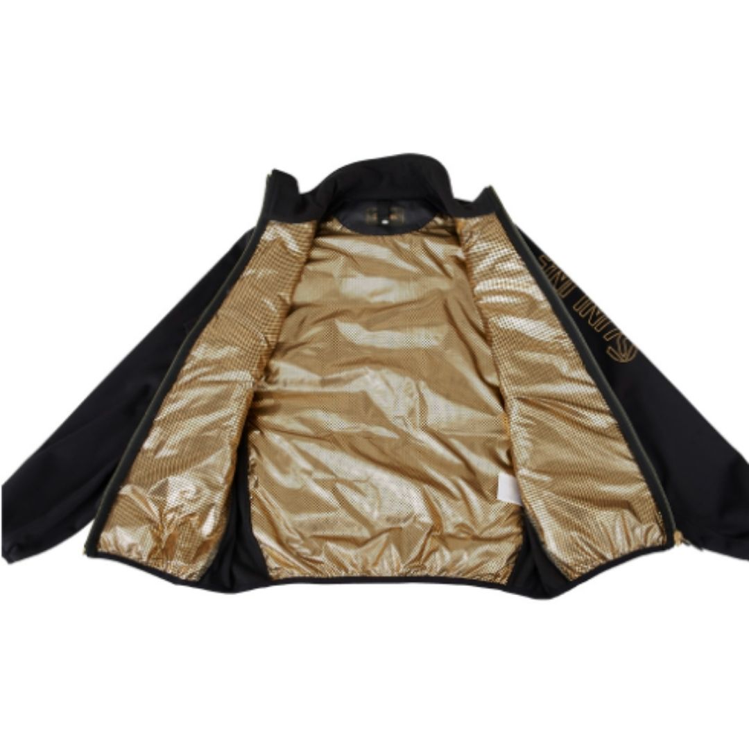 中綿には軽量ながら保温性の高い化繊綿・サーモライト®を使用し、ボディ部の裏地には体温を外に逃がしにくいアルミレイヤード保温プリント生地を採用しています。