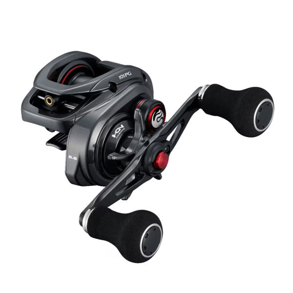 エンゲツ BBはビギナーにも扱いやすいエントリーモデルでありながら、必要十分な機能を備えた鯛ラバ専用機。新たにHAGANEボディをこのクラスでは初採用。剛性感を向上させると同時に、誰もがパーミングしやすいコンパクトボディ形状へと進化。さらにレベルワインド連動機能により、フォール時やドラグ作動時のラインの放出がいっそうスムーズに。鯛ラバ最大の強みとなる細糸のメリットを活かしつつ、大型の真鯛とも安心してやり取りできる一台となっている。巻きが軽いだけでなく、巻きブレが軽減されるPGは最初の一台として、巻き感度重視のHGとして使い分けてほしい。