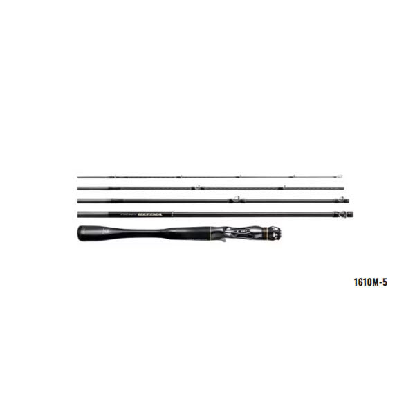 1610M-5 王道番手である1610M。驚くべきはその持ち軽さ、振り軽さ。設計と素材の適材配置により1ピースモデルを凌ぐロッドバランスを実現。バーサタイルに使用できる素直なレギュラーファストテーパーにより、スピナーベイトからライトテキサスまで幅広く対応